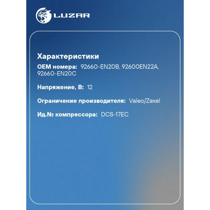 | Совместим с компрессорами кондиционера | 92660-EN20B, 92660-EN20C, 92600EN22A |