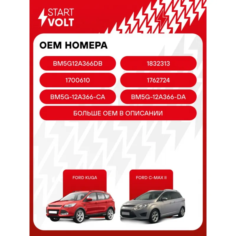 Катушка зажигания для автомобилей Ford Kuga (13-)/C-MAX II (10-) 1.6T Характеристики: Артикул: SC 1016 OEM номера: BM5G12A366DB, 1 832 313, 1700 610, 1762 724, BM5G-12A366-CA, BM5G-12A366-DA, 31339210, 31375550, 31422117, 133955 Количество контактов: 3 Выходное напряжение, кВ: 28 Номинальное напряжение, В: 12 Наличие коммутатора: Есть Энергия искры, мДж: 67,5 Подходит для авто: Ford Kuga (13-), C-Max (11-), Mondeo III (00-), Focus III (11-) Для проверки применяемости отправьте VIN автомобиля через вкладку "Есть вопросы о товаре?" Комплектация: Паспорт изделия/гарантийный талон - 1 шт Катушка зажигания - 1 шт Гарантия: от 1 года.