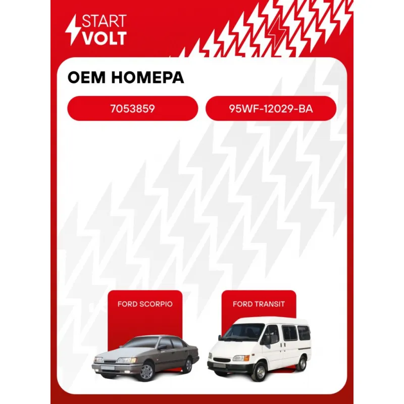 Катушка зажигания для автомобилей Ford Scorpio (85-)/Transit (94-) 2.0i Характеристики: Артикул: SC 0509 OEM номера: 7053859, 95WF-12029-BA Номинальное напряжение, В: 14 Количество контактов: 2 Выходное напряжение, кВ: 31 Наличие коммутатора: нет Первичное сопротивление, Ом: - Вторичное сопротивление, кОм: - Первичная индуктивность, мН: - Вторичная индуктивность, Н: - Энергия искры, мДж: 50 Сопутствующий товар: Наконечники катушек зажигания: - Комплектация: Катушка зажигания - 1 шт Паспорт изделия/гарантийный талон - 1 шт Гарантия: от 1 года.