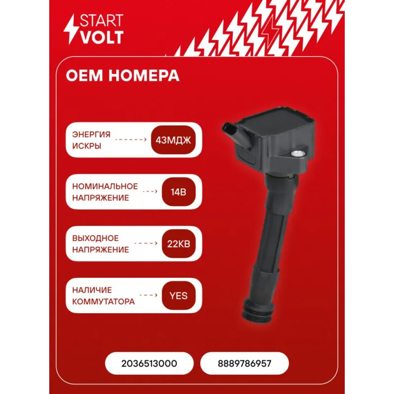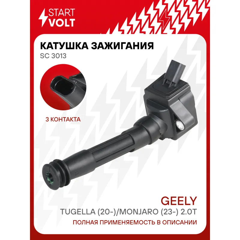 Катушка зажигания для автомобилей Geely Tugella (20-)/Monjaro (21-) 2.0T (после 04.2021 г.) Характеристики: Артикул: SC 3013 OEM номера: 2036513000, 8889786957 Номинальное напряжение, В: 14 Количество контактов: 3 Выходное напряжение, кВ: 22 Наличие коммутатора: да Первичное сопротивление, Ом: - Вторичное сопротивление, кОм: - Первичная индуктивность, мН: - Вторичная индуктивность, Н: - Энергия искры, мДж: 43 Комплектация: Катушка зажигания - 1 шт Паспорт изделия/гарантийный талон - 1 шт Гарантия: от 1 года.