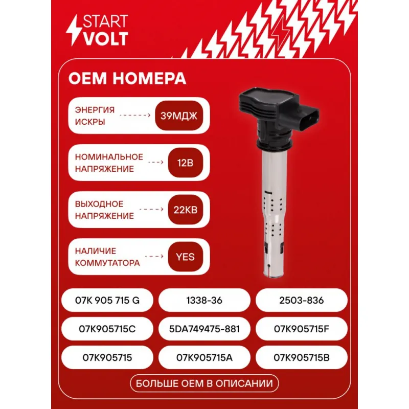 Катушка зажигания для автомобилей VAG Passat B6 (05-)/Octavia A5 (04-)/Golf V (05-) 1.8T/2.0T Характеристики: Артикул: SC 1820 OEM номера: 07k905715, 07k905715A, 07k905715B, 07k905715C, 5DA749475-881, 07k905715F, 07K 905 715 G, 1338-36, 2503-836, 06F 905 115, 06F 905 115 A, 06F 905 115 B, 06F 905 115 C, 06F 905 115 E, 06F 905 115 F, 06F 905 115 G, 07K 905 715 D, 07K 905 715 E Количество контактов: 4 Подходящий разъем AIRLINE:: AECC020, AECC339 Выходное напряжение, кВ: 22 Номинальное напряжение, В: 12 Наличие коммутатора: Есть Энергия искры, мДж: 39 Подходит для авто: Skoda Superb II (08-), Yeti (09-), Octavia A5 (04-) Volkswagen Golf VI (08-), Passat CC (08-), Passat B6 (05-) Audi A3 (12-), A4 B8 (07-), A5 (07-), A6 C6 (04-), TT (06-) Для проверки применяемости отправьте VIN автомобиля через вкладку "Есть вопросы о товаре?" Комплектация: Паспорт изделия/гарантийный талон - 1 шт Катушка зажигания - 1 шт Гарантия: от 1 года.