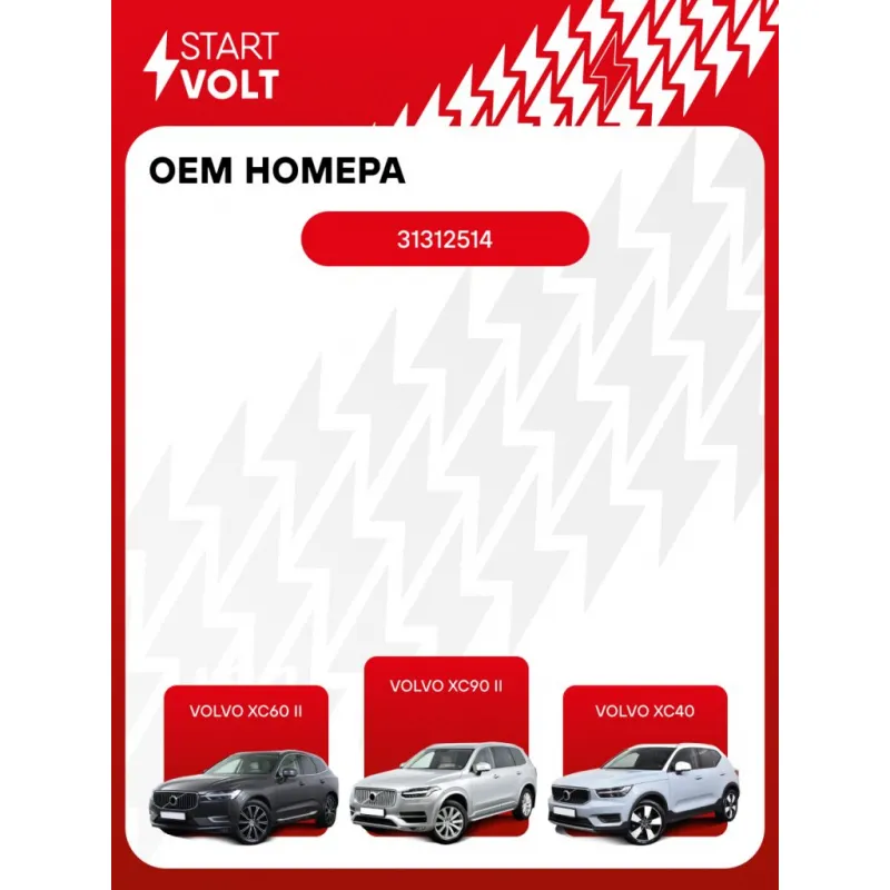 Катушка зажигания для автомобилей Volvo XC60 II (17-)/XC90 II (16-)/XC40 (18-) 2.0T Характеристики: Артикул: SC 1090 OEM номера: 31312514 Номинальное напряжение, В: 14 Количество контактов: 3 Выходное напряжение, кВ: 38 Наличие коммутатора: да Первичное сопротивление, Ом: - Вторичное сопротивление, кОм: - Первичная индуктивность, мН: - Вторичная индуктивность, Н: - Энергия искры, мДж: 60 Сопутствующий товар: Наконечники катушек зажигания: - Комплектация: Катушка зажигания - 1 шт Паспорт изделия/гарантийный талон - 1 шт Гарантия: от 1 года.