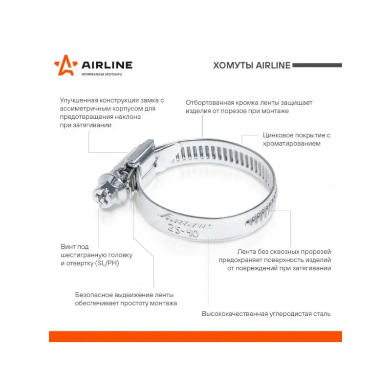 Хомут 10-16/9мм, червячный, усиленный, W1(оцинк), 1 шт. Описание: Хомуты стяжки червячный, усиленный, W1 (оцинкованная сталь) 10-16/9 мм AIRLINE AHC-SZ-02 соединительный элемент, применяемый для крепления и герметизации соединения шлангов, патрубков и других жёстких и гибких трубопроводов. Диаметр обязательно соотносится с размером диаметра трубы. Хомуты такого вида очень сложно разорвать или растянуть они устойчивы к любым механическим воздействиям, поэтому их часто используют при высоких нагрузках. Детали имеют цинковое покрытие с хромированием по ГОСТ 9301-86. Особенности: - Улучшенная конструкция замка; - Отбортованная кромка ленты защищает изделия от порезов при монтаже; - Цинковое покрытие с хромированием; - Безопасное выдвижение ленты; - Винт под шестигранную головку и отвертку (PH/SL); - Высококачественная сталь; Быстрая и простая установка хомута на элементы круглой формы: шланги, трубы, патрубки, штуцера, проводов. *При максимальном смыкании замка хомута, для его разъединения, возможно, понадобиться инструмент в виде отвертки, чтоб сместить центральный зубчатый шток по отношению к зубчатому пазу в сторону. Набор хомутов для стяжек входят в базовый комплект необходимых автомобильных инструментов. Хомуты - это универсальный и простой в использовании инструмент в быту, для организации кабелей, для сортировки ключей, для фиксации частей мебели, для подвязки растений и фиксации ветвей. Оригинальный товар от производителя Airline. Характеристики: Артикул: AHC-SZ-02 Диапозон применения, мм: 10-16 Ширина ленты, мм: 9 Покрытие стали: оцинкованый Тип конструкции: червячный Размер ключа, мм: 7 Вид отвертки: PH/SL Толщина, мм: 0,8 Комплектация: Хомут - 1 шт Гарантия: от 1 года.