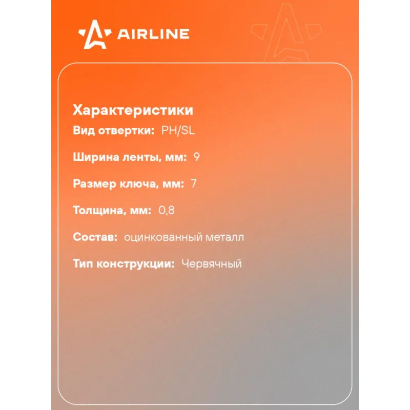 Хомут 100-120/9мм, червячный, усиленный, W1(оцинк), 1 шт. Описание: Хомуты стяжки червячный, усиленный, W1 (оцинкованная сталь) 100-120/9 мм AIRLINE AHCG014 соединительный элемент, применяемый для крепления и герметизации соединения шлангов, патрубков и других жёстких и гибких трубопроводов. Диаметр обязательно соотносится с размером диаметра трубы. Хомуты такого вида очень сложно разорвать или растянуть они устойчивы к любым механическим воздействиям, поэтому их часто используют при высоких нагрузках. Детали имеют цинковое покрытие с хромированием по ГОСТ 9301-86. Особенности: - Улучшенная конструкция замка; - Отбортованная кромка ленты защищает изделия от порезов при монтаже; - Цинковое покрытие с хромированием; - Безопасное выдвижение ленты; - Винт под шестигранную головку и отвертку (PH/SL); - Высококачественная сталь; Быстрая и простая установка хомута на элементы круглой формы: шланги, трубы, патрубки, штуцера, проводов. *При максимальном смыкании замка хомута, для его разъединения, возможно, понадобиться инструмент в виде отвертки, чтоб сместить центральный зубчатый шток по отношению к зубчатому пазу в сторону. Набор хомутов для стяжек входят в базовый комплект необходимых автомобильных инструментов. Хомуты - это универсальный и простой в использовании инструмент в быту, для организации кабелей, для сортировки ключей, для фиксации частей мебели, для подвязки растений и фиксации ветвей. Оригинальный товар от производителя Airline. Характеристики: Артикул: AHCG014 Тип конструкции: червячный Ширина ленты, мм: 9 Покрытие стали: оцинкованый Диапозон применения, мм: 100-120 Размер ключа, мм: 7 Вид отвертки: PH/SL Толщина, мм: 0,8 Комплектация: Хомут - 1 шт Гарантия: от 1 года.