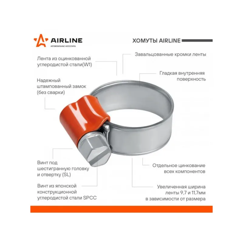 Хомут 16-25/11,7мм, червячный PRO, усиленный, W1(оцинк.), 1 шт. Описание: Хомуты стяжки червячный PRO, усиленный, W1 (оцинкованная сталь) 16-25/11,7 мм AIRLINE AHC-S-07 соединительный элемент, применяемый для крепления и герметизации соединения шлангов, патрубков и других жёстких и гибких трубопроводов. Диаметр обязательно соотносится с размером диаметра трубы. Хомуты такого вида очень сложно разорвать или растянуть они устойчивы к любым механическим воздействиям, поэтому их часто используют при высоких нагрузках. Такой хомут можно использовать несколько раз при этом соединение не теряет своей герметичности. Особенности: - Лента из оцинкованной углеродистой стали; - Завальцованные кромки ленты; - Гладкая внутренняя поверхность; - Надежный штампованный замок (без сварки); - Винт под шестигранную головку и отвертку (SL); - Винт из японской конструкционной углеродистой стали SPCC; - Отдельное цинкование всех компонентов; - Увеличенная ширина ленты 9,7 и 11,7 мм в зависимости от размера; Быстрая и простая установка хомута на элементы круглой формы: шланги, трубы, патрубки, штуцера, проводов. *При максимальном смыкании замка хомута, для его разъединения, возможно, понадобиться инструмент в виде отвертки, чтоб сместить центральный зубчатый шток по отношению к зубчатому пазу в сторону. Набор хомутов для стяжек входят в базовый комплект необходимых автомобильных инструментов. Хомуты - это универсальный и простой в использовании инструмент в быту, для организации кабелей, для сортировки ключей, для фиксации частей мебели, для подвязки растений и фиксации ветвей. Оригинальный товар от производителя Airline. Характеристики: Артикул: AHC-S-07 Диапозон применения, мм: 16-25 Вид отвертки: SL Ширина ленты, мм: 11,7 Покрытие стали: оцинкованные Тип конструкции: червячный Размер ключа, мм: 7 Толщина, мм: 0,8 Комплектация: Хомут - 1 шт Гарантия: от 1 года.