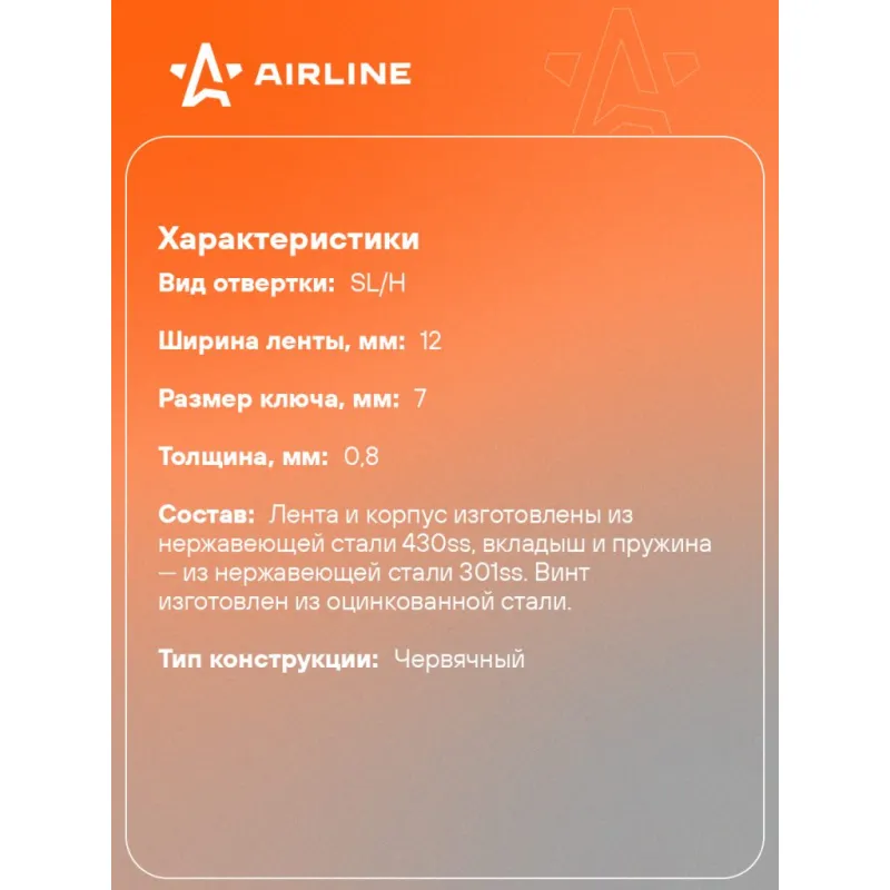 Хомут червячный 16-27/12мм с пружинной вставкой, W2 (нерж.) Описание: Соединительный элемент, применяемый для крепления и герметизации соединения шлангов, патрубков и других жёстких и гибких трубопроводов. По диаметру он может быть разным. Диаметр обязательно соотносится с размером диаметра трубы. Хомуты такого вида очень сложно разорвать или растянуть они устойчивы к любым механическим воздействиям, поэтому их часто используют при высоких нагрузках. Такой хомут можно использовать несколько раз при этом соединение не теряет своей герметичности. Хомуты состоят из ленты с зубчатой дорожкой, корпуса и специального винта для затяжки хомута. На ленте нет сквозных прорезей, что гарантирует целостность поверхности патрубка. Главной особенностью считается оснащение хомута пружиной в виде волны, которая автоматически натягивается для обеспечения оптимального радиального усилия зажима(самоподтягивание). Данный тип хомута является идеальным выбором для применений при экстремальных перепадах температуры (например, при наддувочном воздухе в турбине), при экстремально низких температурах или для удержания шлангов с тенденцией к «ползучести» так называемой релаксации (ослабления) шланга. Характеристики: Артикул: ADHSS001 Тип конструкции: червячный Толщина, мм: 0,8 Ширина ленты, мм: 12 Покрытие стали: цинк Диапозон применения, мм: 10-27 Вид отвертки: SL/H Размер ключа, мм: 7 Сила затяжки, Нм: 6 Комплектация: Хомут - 1 шт Гарантия: от 1 года.