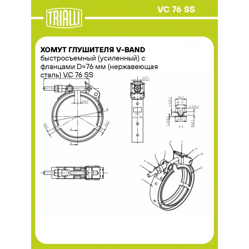 Хомут глушителя V-band быстросъемный (усиленный) с фланцами D=76 мм (нержавеющая сталь) Характеристики: Артикул: VC 76 SS OEM номера: VC 76 SS Материал: Нержавеющая сталь AISI 304 Тип крепления: Универсальный хомут V-Band Размер резьбы: M8 Гарантийный срок: 2 года/60 тыс. Диапазон обжима: 76 Товарная линейка: BLACK Дополнительная информация: Этикетка изделия может отличаться от представленной на фото Комплектация: Хомут - 1 шт Гарантия: от 1 года.