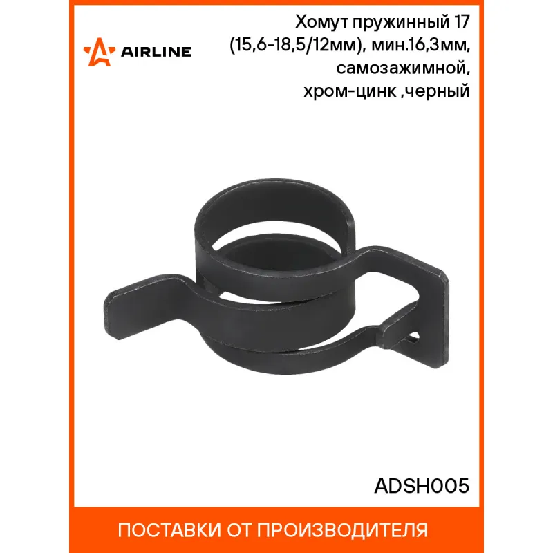 Хомут пружинный 17 (15,6-18,5/12мм), мин.16,3мм, самозажимной, хром-цинк(dacromet),черный Описание: Представляют собой крепежное изделие в виде замкнутого кольца из рессорно-пружинной стали с хромо-цинковым антикоррозийным покрытием. Используются для соединения труб, шлангов и патрубков, которые регулярно подвергаются воздействию высоких температур или резких температурных перепадов. Кроме того, данное изделие позволяет надежно фиксировать шланги, регулярно сползающих или соскальзывающих с поверхности. Монтируется при помощи спец. пассатиж, путем сжатия и разжатия кольца. Широко используются в области машиностроения и автомобильной промышленности. В частности, в автомобилестроении используются в топливных системах, отопительных системах и системах охлаждения. Они идеально подходят к системам «шланг-патрубок». Особенностью этого вида является, что после монтажа они обеспечивают автоматическое подтягивание. Это значит, что при низких или высоких температурах, когда диаметр шланга уменьшается или увеличивается, радиальная зажимная сила будет оставаться постоянной, обеспечивая плотное и стабильное соединение. Характеристики: Артикул: ADSH005 Номинальный диаметр патрубка, мм: 17 Минимальный функциональный диаметр патрубка, мм: 16,3 Максимальное диаметр разжатия, мм: 18,5 Минимальный диаметр сжатия, мм: 15,6 Температурастойкость, С, мин.: -40 Температурастойкость, С, макс.: +200 Покрытие антикоррозионное: хром-цинк-алюминий Марка стали: 51CRV4 Ширина, мм (+-0,3): 12 Толщина, мм (+-0,4): 0,8 Цвет: черный Инструмент монтажа: Спец пассатижи Корозиная стойкость, час: 720 Комплектация: Хомут - 1 шт Гарантия: от 1 года.