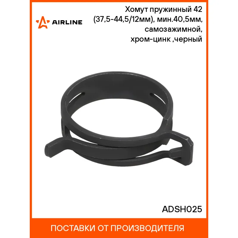 Хомут пружинный 42 (37,5-44,5/12мм), мин.40,5мм, самозажимной, хром-цинк(dacromet),черный Описание: Представляют собой крепежное изделие в виде замкнутого кольца из рессорно-пружинной стали с хромо-цинковым антикоррозийным покрытием. Используются для соединения труб, шлангов и патрубков, которые регулярно подвергаются воздействию высоких температур или резких температурных перепадов. Кроме того, данное изделие позволяет надежно фиксировать шланги, регулярно сползающих или соскальзывающих с поверхности. Монтируется при помощи спец. пассатиж, путем сжатия и разжатия кольца. Широко используются в области машиностроения и автомобильной промышленности. В частности, в автомобилестроении используются в топливных системах, отопительных системах и системах охлаждения. Они идеально подходят к системам «шланг-патрубок». Особенностью этого вида является, что после монтажа они обеспечивают автоматическое подтягивание. Это значит, что при низких или высоких температурах, когда диаметр шланга уменьшается или увеличивается, радиальная зажимная сила будет оставаться постоянной, обеспечивая плотное и стабильное соединение. Характеристики: Артикул: ADSH025 Номинальный диаметр патрубка, мм: 42 Минимальный функциональный диаметр патрубка, мм: 40,5 Максимальное диаметр разжатия, мм: 44,5 Минимальный диаметр сжатия, мм: 37,5 Толщина, мм (+-0,4): 2,1 Температурастойкость, С, мин.: -40 Температурастойкость, С, макс.: +200 Покрытие антикоррозионное: хром-цинк-алюминий Марка стали: 51CRV4 Ширина, мм (+-0,3): 12 Цвет: черный Инструмент монтажа: Спец пассатижи Корозиная стойкость, час: 720 Комплектация: Хомут - 1 шт Гарантия: от 1 года.