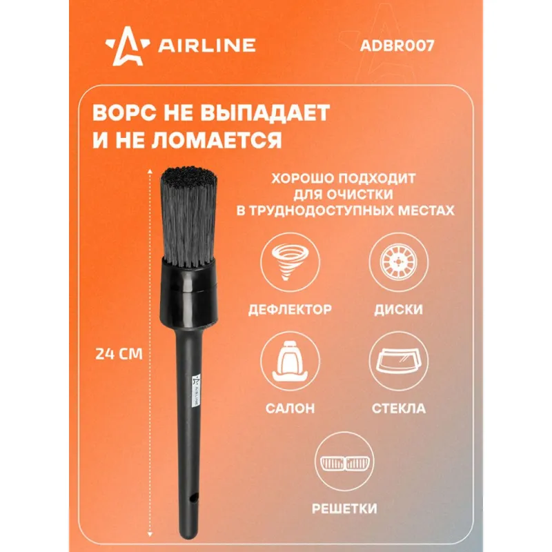 Кисть для детейлинга N18 (24см) Описание: Кисти обладают средней жесткостью и состоят из смеси искусственного ворса, что позволяет им эффективно убирать пыль и грязь. Кисть предназначена для тщательной очистки мест в автомобиле, узкие щели и труднодоступные углы, которые обычным способом не удается достичь. Ручка кистей изготовлена из полипропилена, что обеспечивает длительный срок службы в агрессивных средах. Можно приобрести набором и по отдельности. Преимущества: - Устойчива к автохимии; - Универсальный инструмент для уборки автомобиля; - Уборка без разводов и царапин; - Применяется для очищения и нанесения составов. Полезный подарок папе, отцу, мужу, парню и другу для идеальной уборки автомобиля, автохимчистки, колесных дисков и интерьера. Характеристики: Артикул: ADBR007 Диаметр, см: 3,2 Длина, см: 24 Ворс: искусственный Цвет: черный Комплектация: Кисть с картонным воблером - 1 шт Гарантия: от 1 года.