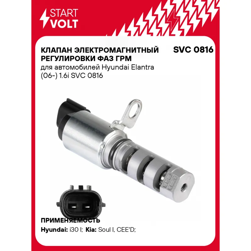 Клапан электромагнитный регулировки фаз ГРМ для автомобилей Hyundai Elantra (06-) 1.6i Характеристики: Артикул: SVC 0816 OEM номера: 24355-2B600 Номинальное напряжение, В: 12 Сопротивление изоляции обмотки клапана, Ом: 7,6 Количество на автомобиль: 1 Подходит для авто: Hyundai i30 I (07-) Kia Soul I (08-), CEE'D (07-) Для проверки применяемости отправьте VIN автомобиля через вкладку "Есть вопросы о товаре?" Комплектация: Паспорт изделия/гарантийный талон Клапан электромагнитный регулировки фаз ГРМ - 1 шт Гарантия: от 1 года.
