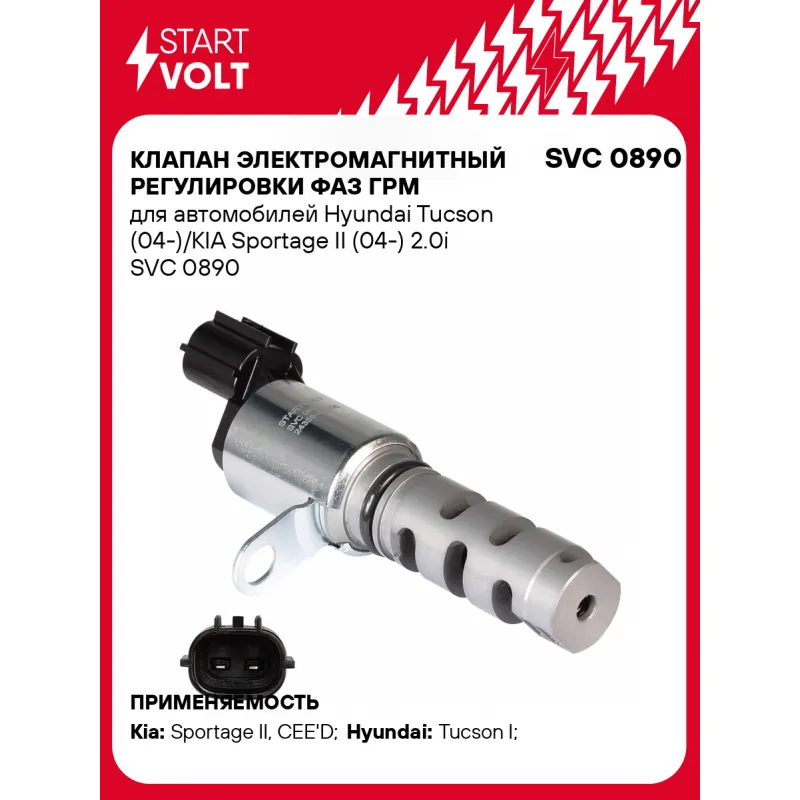 Клапан электромагнитный регулировки фаз ГРМ для автомобилей Hyundai Tucson (04-)/KIA Sportage II (04-) 2.0i Характеристики: Артикул: SVC 0890 OEM номера: 24355-23800, 24355-23763, 24355-237632 Номинальное напряжение, В: 12 Сопротивление изоляции обмотки клапана, Ом: 7,6 Количество на автомобиль: 1 Подходит для авто: Kia Sportage II (04-), CEE'D (07-) Hyundai Tucson I (04-) Для проверки применяемости отправьте VIN автомобиля через вкладку "Есть вопросы о товаре?" Комплектация: Паспорт изделия/гарантийный талон Клапан электромагнитный регулировки фаз ГРМ - 1 шт Гарантия: от 1 года.