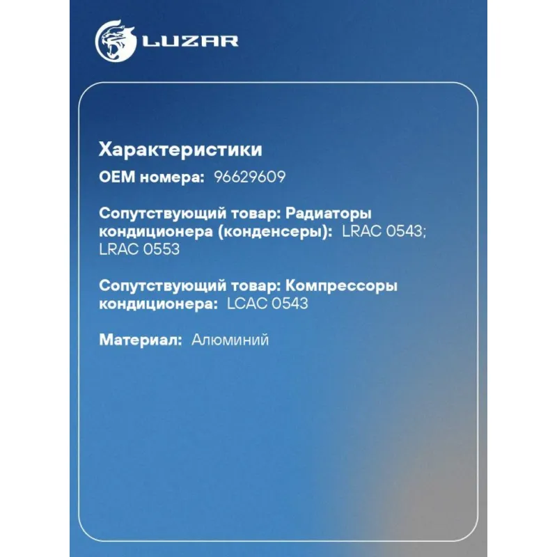 | Сопутствующий товар: Радиаторы кондиционера (конденсеры) | LRAC 0543; LRAC 0553 |