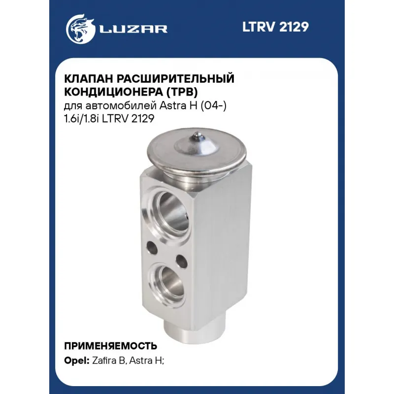 Клапан расширительный кондиционера (ТРВ) для автомобилей Astra H (04-) 1.6i/1.8i Характеристики: Артикул: LTRV 2129 OEM номера: 13175539, 1618314, 93189551, 93185477 Количество на автомобиль: 1 Материал: алюминий Сопутствующий товар: Ресиверы-осушители: LCD 2104 Сопутствующий товар: Радиаторы кондиционера (конденсеры): LRAC 21165; LRAC 2129 Сопутствующий товар: Компрессоры кондиционера: LCAC 2129 Сопутствующий товар: Электровентиляторы кондиционера: LFAC 2166 Подходит для авто: Opel Zafira B (05-), Astra H (04-), Zafira B (05-) Для проверки применяемости отправьте VIN автомобиля через вкладку "Есть вопросы о товаре?" Комплектация: Клапан расширительный кондиционера (ТРВ) Паспорт изделия Гарантия: от 1 года.