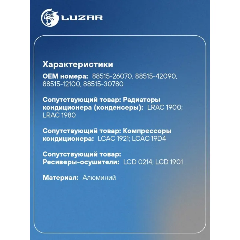 | Сопутствующий товар: Радиаторы кондиционера (конденсеры) | LRAC 1900; LRAC 1980 |