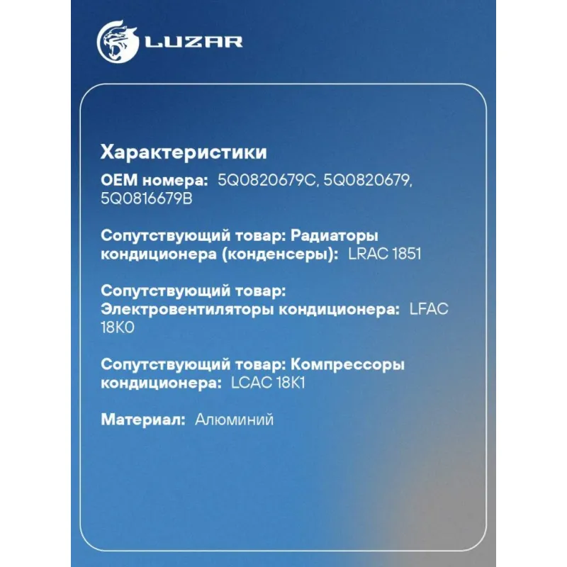 | Сопутствующий товар: Радиаторы кондиционера (конденсеры) | LRAC 1851 |