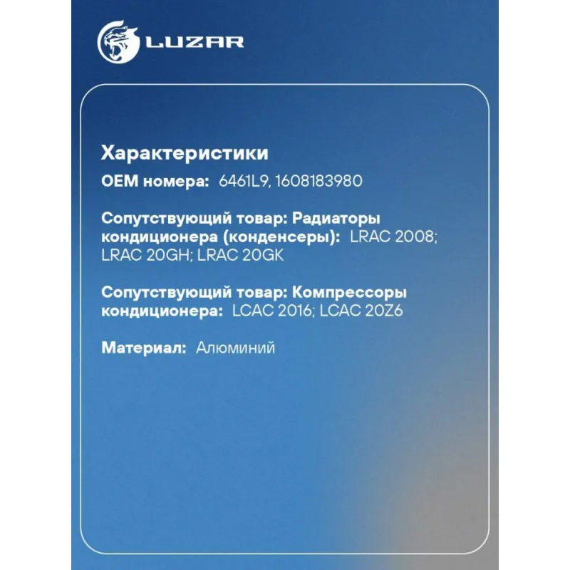| Сопутствующий товар: Компрессоры кондиционера | LCAC 2016; LCAC 20Z6 |