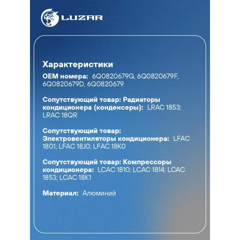 | Сопутствующий товар: Радиаторы кондиционера (конденсеры) | LRAC 1853; LRAC 18QR |