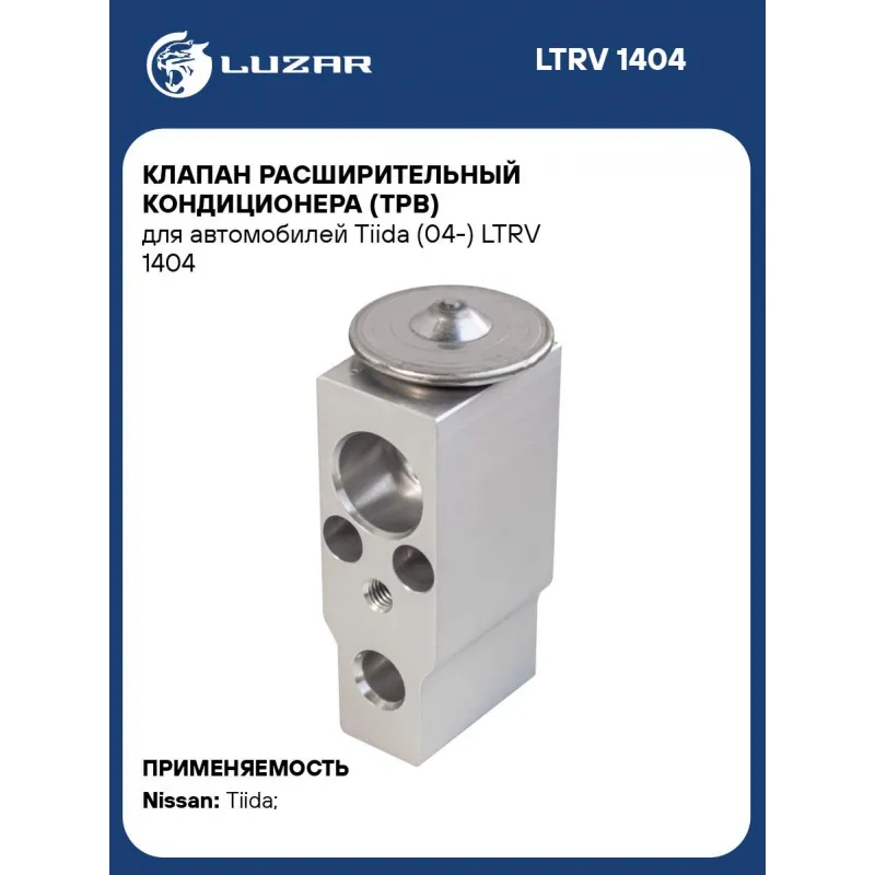 Клапан расширительный кондиционера (ТРВ) для автомобилей Tiida (04-) Характеристики: Артикул: LTRV 1404 OEM номера: 922001U60A Количество на автомобиль: 1 Материал: алюминий Сопутствующий товар: Ресиверы-осушители: LCR 1402 Сопутствующий товар: Радиаторы кондиционера (конденсеры): LRAC 14AX Сопутствующий товар: Компрессоры конди... Читать полностью →