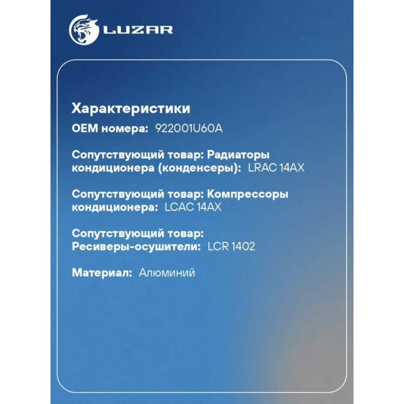 | Сопутствующий товар: Радиаторы кондиционера (конденсеры) | LRAC 14AX |