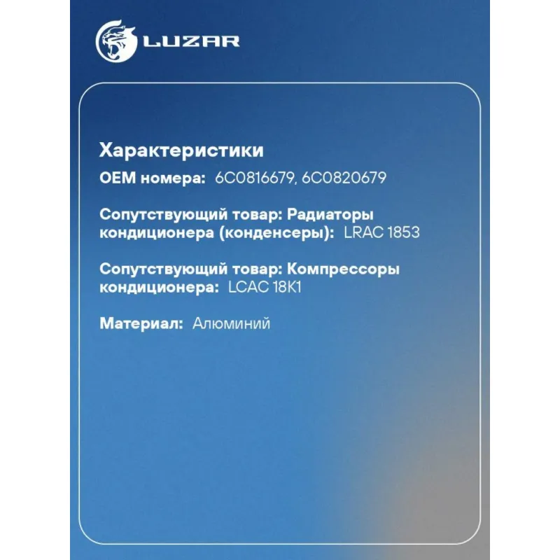 | Сопутствующий товар: Радиаторы кондиционера (конденсеры) | LRAC 1853 |