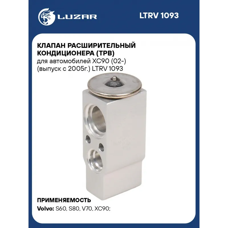Клапан расширительный кондиционера (ТРВ) для автомобилей XC90 (02-) (выпуск с 2005г.) Характеристики: Артикул: LTRV 1093 OEM номера: 30780559, 30676364, 30780558 Количество на автомобиль: 1 Материал: алюминий Сопутствующий товар: Ресиверы-осушители: LCR 1005 Сопутствующий товар: Радиаторы кондиционера (конденсеры): LRAC 1055; LRAC 1056; LRAC 1057; LRAC 1058 Сопутствующий товар: Компрессоры кондиционера: LCAC 1054; LCAC 1093 Подходит для авто: Volvo S60 (00-), S80 (98-), V70 (00-), XC90 (02-), S80 (98-), XC90 (02-) Для проверки применяемости отправьте VIN автомобиля через вкладку "Есть вопросы о товаре?" Комплектация: Клапан расширительный кондиционера (ТРВ) Паспорт изделия Гарантия: от 1 года.