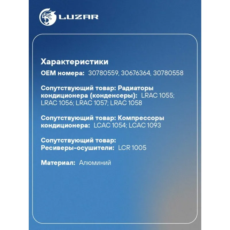 | Сопутствующий товар: Радиаторы кондиционера (конденсеры) | LRAC 1055; LRAC 1056; LRAC 1057; LRAC 1058 |