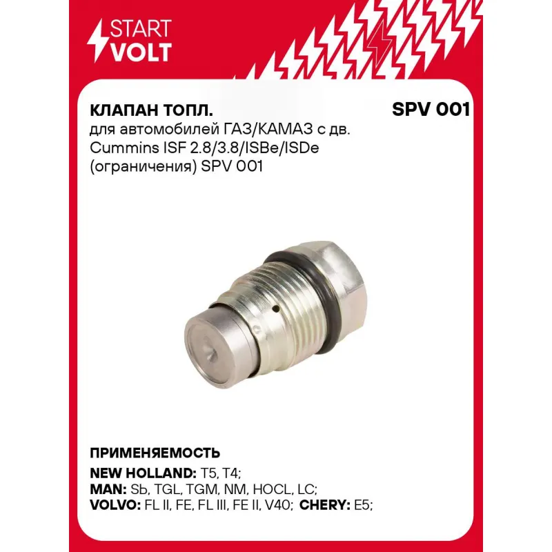 Клапан топл. для автомобилей ГАЗ/КАМАЗ с дв. Cummins ISF 2.8/3.8/ISBe/ISDe (ограничения) Характеристики: Артикул: SPV 001 OEM номера: 01182560, 118 2560, 51 10304 0291, 20793590, 3884350, 1 110 010 015, 1 110 010 028, 74 20 793 590, 5 317 174, 3974093, V 837 079 623, 5801474163, X57507700008, J56001111A05A38 Рабочее давление, бар: 1800 Количество на автомобиль: 1 Комплектация: Паспорт изделия/гарантийный талон Клапан ограничения давления - 1 шт Гарантия: от 1 года.