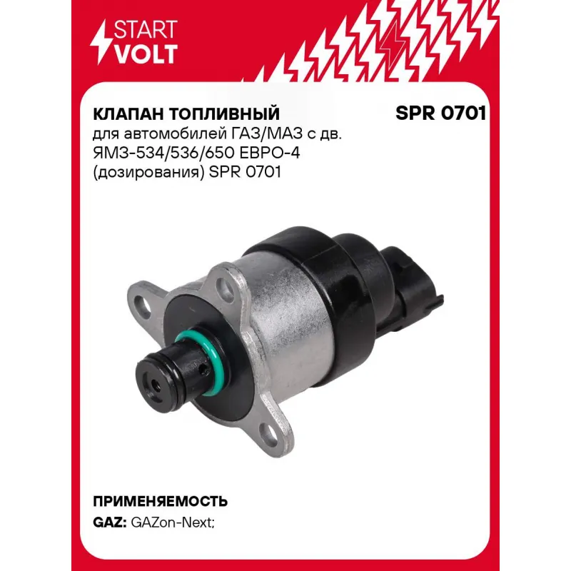 Клапан топливный для автомобилей ГАЗ/МАЗ с дв. ЯМЗ-534/536/650 ЕВРО-4 (дозирования) Характеристики: Артикул: SPR 0701 OEM номера: 0928400771, 0 928 400 776, 0928400772, 53401111674 Номинальное напряжение, В: 24 Сопротивление, Ом: 2.8 Максимальный ток, А: 2 Частота, Гц: 165-195 Количество на автомобиль: 1 Подходит для авто: ГАЗ GAZon-Next (14-) Для проверки применяемости отправьте VIN автомобиля через вкладку "Есть вопросы о товаре?" Комплектация: Клапан дозирования топлива - 1 шт Паспорт изделия/гарантийный талон Гарантия: от 1 года.
