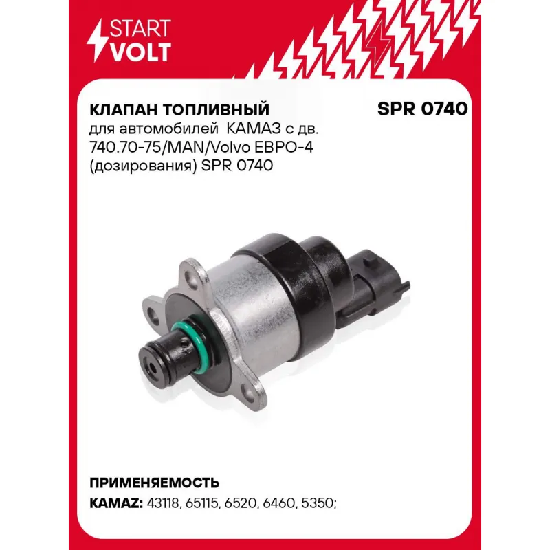 Клапан топливный для автомобилей КАМАЗ с дв. 740.70-75/MAN/Volvo ЕВРО-4 (дозирования) Характеристики: Артикул: SPR 0740 OEM номера: 0928400745, 51.12505-0028, 0928400844, 0928400749, 1 465 ZS0 095 Номинальное напряжение, В: 24 Сопротивление, Ом: 2,6-3,5 Максимальный ток, А: 2 Частота, Гц: 165-195 Количество на автомобиль: 1 Подходит для авто: КамаАЗ 43118, 65115, 6520, 6460, 5350 Для проверки применяемости отправьте VIN автомобиля через вкладку "Есть вопросы о товаре?" Комплектация: Паспорт изделия/гарантийный талон Клапан дозирования топлива - 1 шт Гарантия: от 1 года.