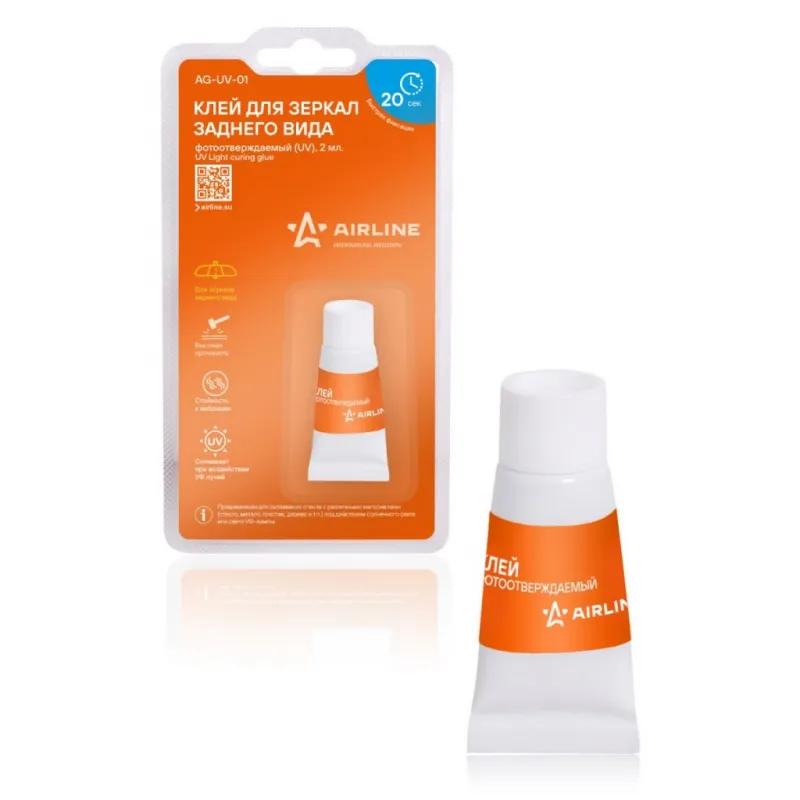 Клей для зеркал заднего вида, фотоотверждаемый (UV), 2 мл. Описание: Предназначен для склеивания стекла с различными материалами (стекло, металл, пластик, дерево и т.п.) под действием солнечного света или света УФ-лампы. Полученное клеевое соединение обладает высокой прочностью и стойкостью к вибрации. Характеристики: Артикул: AG-UV-01 Температура эксплуатации, °С: -60/+80 Материал для склеивания: металл, стекло Время фиксации, мин: 1 консистенция: жидкий Вид: специальный, светоотверждаевый Цвет после смешивания: прозрачный Время полной полимеризации, ч: 24 Температура монтажа, °С: +10/+40 Индивидуальная добавка: нет Комплектация: Клей - 1 шт Блистер - 1 шт Гарантия: от 1 года.