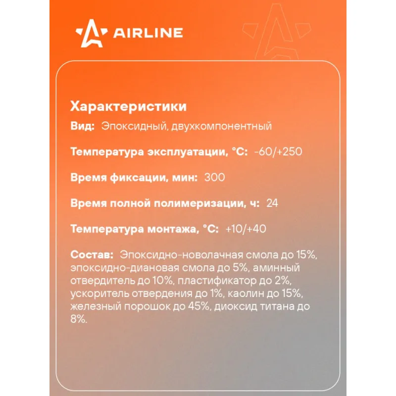 Клей эпоксидный сверхпрочный, 2-х комп.(0,5+0,5кг), металлонаполненный,термостойкий (+250 С) Описание: Эксклюзивный продукт, рецептура не имеющая аналогов. Предназначен для быстрого ремонта и прочного соединения деталей из черных и цветных металлов, пластмасс, стекла, керамики, дерева в различных комбинациях. Склеивание обусловлено образованием прочной адгезионной связи между прослойкой клея и материалами соединяемых поверхностей. Обладает уникальными свойствами, сравнимыми с жидким металлом. Подходит для профессионального использования, в том числе промышлнной сфере, а так же для бытового применения. Идеальный продукт для промышленных предприятий, дома и Авто! Устойчив к повышенным температурам +250С! Характеристики: Артикул: ADGC043 консистенция: пастообразный Вид: эпоксидный, двухкомпонентный Индивидуальная добавка: железный порошок Цвет после смешивания: серый Температура эксплуатации, °С: -60/+250 Материал для склеивания: черные и цветные металлы, пластмассы, стекло, керамика, дерево Время фиксации, мин: 300 Время полной полимеризации, ч: 24 Температура монтажа, °С: +10/+40 Комплектация: Термоусадка+стикер - 1 шт Компонент А-1 банка Компонент В-1 банка Гарантия: от 1 года.