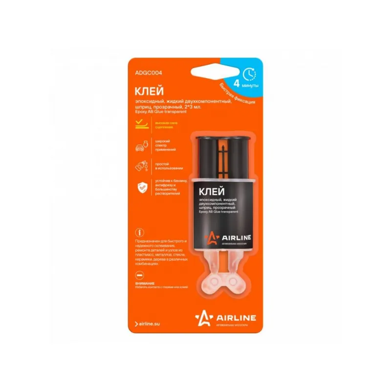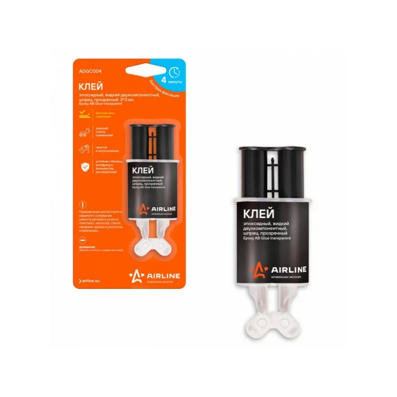 Клей эпоксидный, жидкий двухкомпонентный,шприц, прозрачный, 2*3 мл. Описание: Эпоксидные клеи сочетают в себе исключительную прочность и долговечность, а также устойчивы к бензину, антифризу и большинству растворителей. Предназначен для быстрого и надежного склеивания, ремонта деталей и узлов из пластмасс, керамики, дерева в различных комбинациях, металлов, Время фиксации 4 минуты. Не рекомендуется для склеивания большинства полиэтиленовых или пропиленовых пластиков. Характеристики: Артикул: ADGC004 Температура эксплуатации, °С: -50/+100 Минимальный зазор, мм: 4 Материал для склеивания: древесина, стекло, керамика, металлы, пластмассы Время фиксации, мин: 4 консистенция: жидкий Вид: эпоксидный, двухкомпонентный Цвет после смешивания: прозрачный Время полной полимеризации, ч: 24 Температура монтажа, °С: +10/+40 Индивидуальная добавка: нет Объем, мл: 2*3 Комплектация: Клей в шприце - 1 шт Блистер - 1 шт Гарантия: от 1 года.
