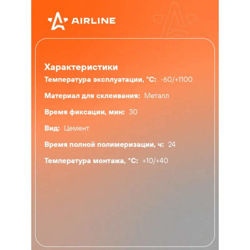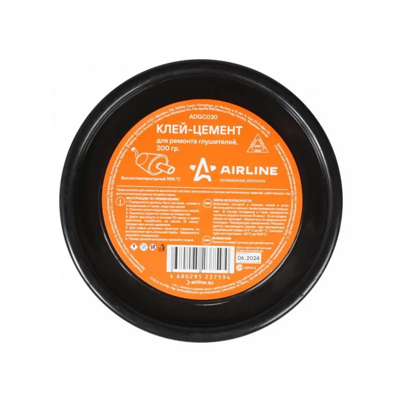 Клей-цемент для ремонта глушителей, банка, 200 гр. Описание: Цемент глушителя AIRLINE выдерживает температуру до 1100°С и идеален для сборки герметичных соединений в новых выхлопных системах. Также применим для временного устранения небольших отверстий и трещин. Характеристики: Артикул: ADGC030 Температура эксплуатации, °С: -60/+1100 Материал для склеивания: металл Время фиксации, мин: 30 консистенция: пастообразная Вид: цемент Цвет после смешивания: серый Время полной полимеризации, ч: 24 Температура монтажа, °С: +10/+40 Индивидуальная добавка: нет Комплектация: Клей в банке - 1 шт Гарантия: от 1 года.