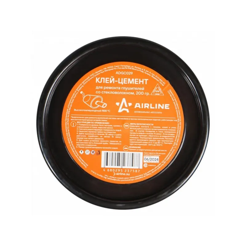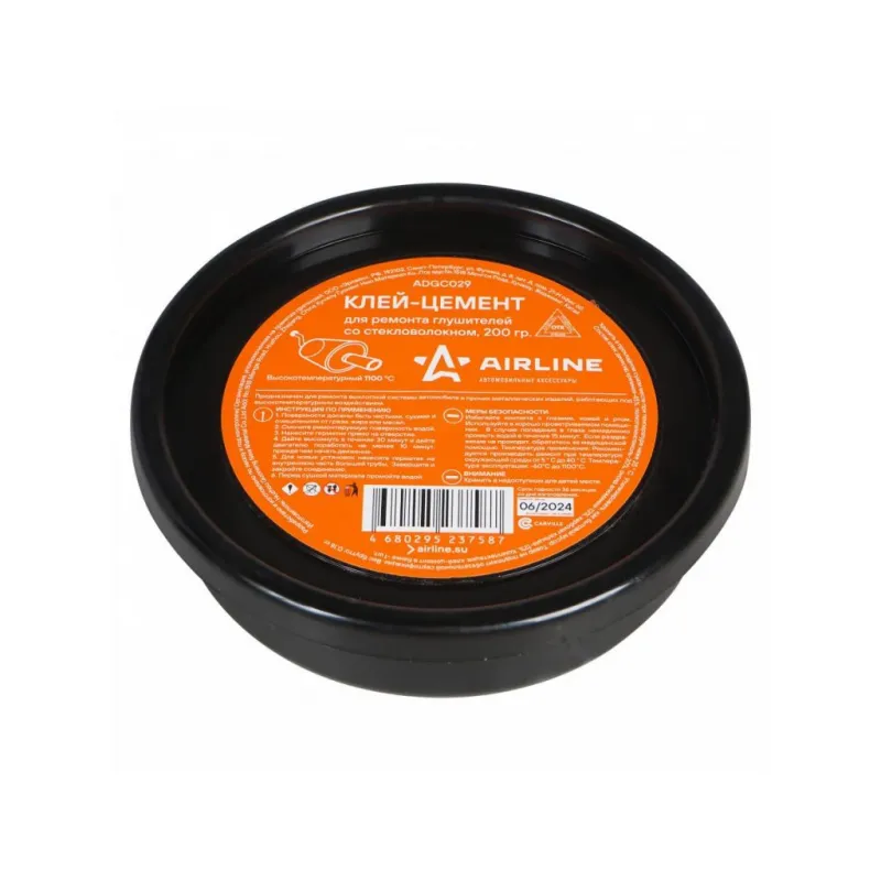 Клей-цемент для ремонта глушителей со стекловолокном, банка, 200 гр. Описание: Цемент глушителя AIRLINE выдерживает температуру до 1100°С и идеален для сборки герметичных соединений в новых выхлопных системах. Также применим для временного устранения небольших отверстий и трещин. Добавление стекловолокна армирует состав тем самым делает его связь более прочной. Характеристики: Артикул: ADGC029 Температура эксплуатации, °С: -60/+1100 Материал для склеивания: металл Время фиксации, мин: 30 консистенция: пастообразная Вид: цемент Цвет после смешивания: серый Время полной полимеризации, ч: 24 Температура монтажа, °С: +10/+40 Индивидуальная добавка: нет Комплектация: Клей в банке - 1 шт Гарантия: от 1 года.