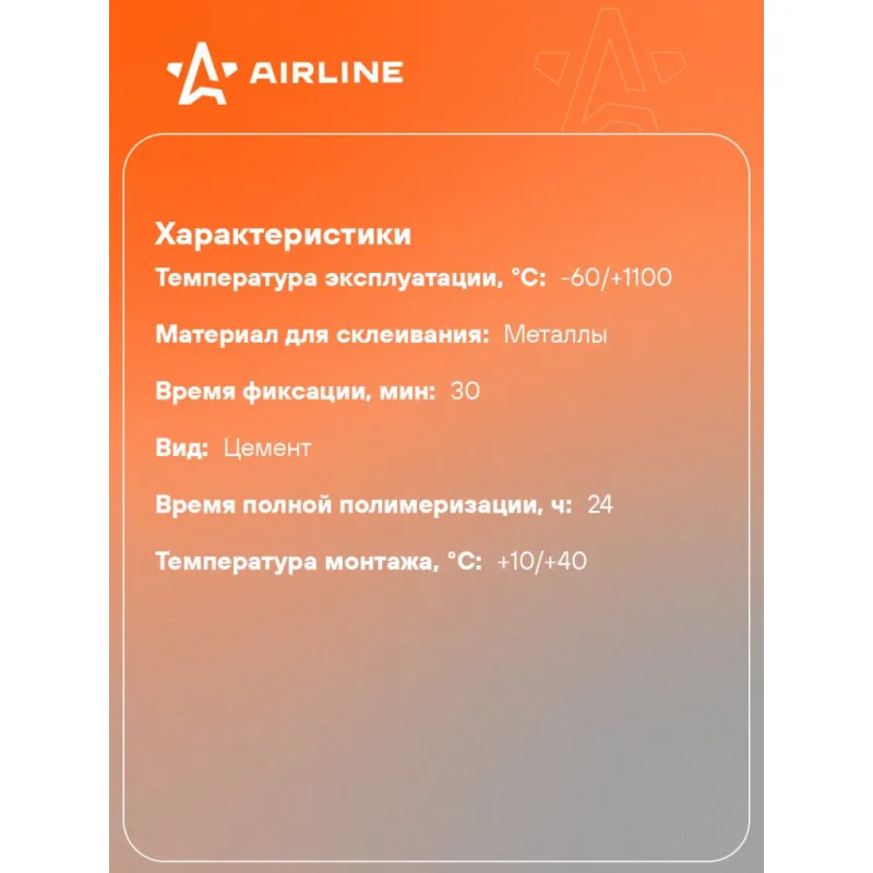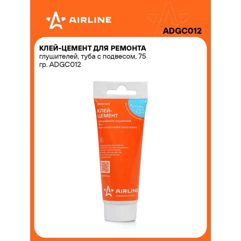 Клей-цемент для ремонта глушителей, туба с подвесом, 75 гр. Описание: Цемент глушителя AIRLINE выдерживает температуру до 1100°С и идеален для сборки герметичных соединений в новых выхлопных системах. Также применим для временного устранения небольших отверстий и трещин. Характеристики: Артикул: ADGC012 Температура эксплуатации, °С: -60/+1100 Объем, мл: 50 Материал для склеивания: металлы Время фиксации, мин: 30 консистенция: пастообразный Вид: цемент Цвет после смешивания: серый Время полной полимеризации, ч: 24 Температура монтажа, °С: +10/+40 Индивидуальная добавка: нет Комплектация: Клей-цемент в тубе - 1 шт Гарантия: от 1 года.