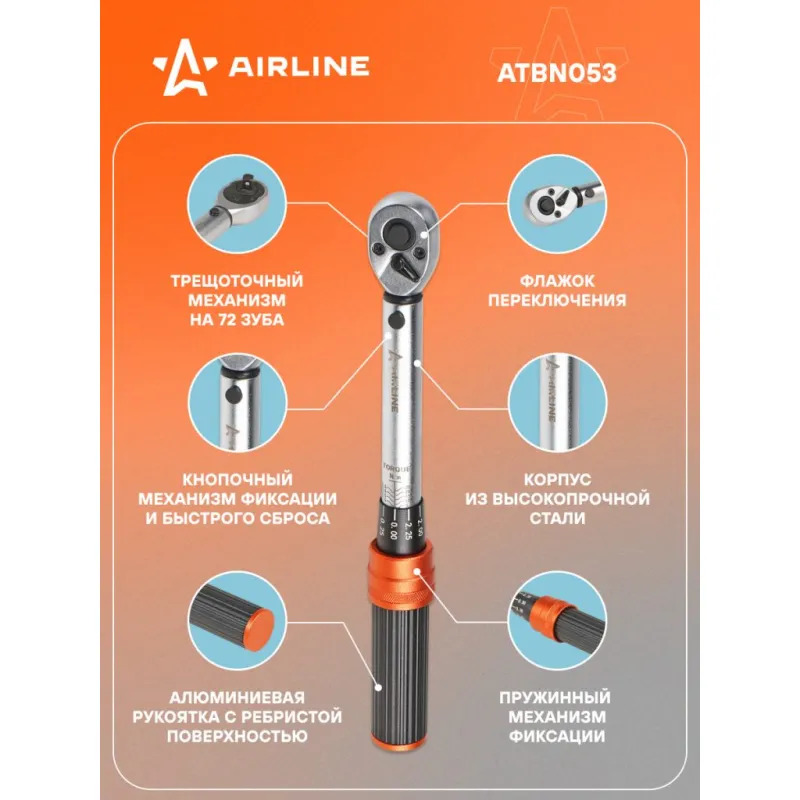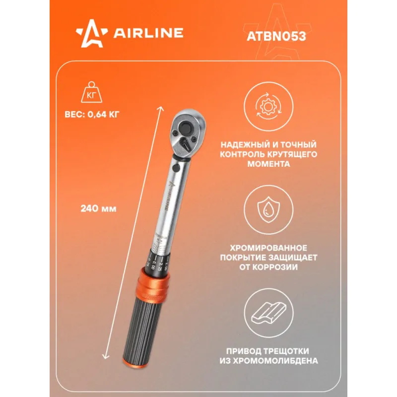 Ключ динамометрический 1/4" 5-25Нм PRO, кнопка быстр.сброса, алюмин.рук., кейс Описание: Динамометрический ключ 1/4" 5-25 Нм PRO длина ключа 240 мм в кейсе с кнопкой быстрого сброса AIRLINE ATBN053 Динамометрический ключ применяется в различных сферах профессиональной деятельности для затяжки резьбовых соединений с точно заданным моментом. Достижение заданного момента сопровождается ощутимым щелчком и небольшим холостым ходом. Ключ изготовлен из высококачественной стали, что придает увеличенный рабочий ресурс и надежность в эксплуатации. Ручка из оксида алюминия, легкая и портативная, имеет ребристую поверхность для надежной фиксации в руке и предотвращения проскальзывания. Прочный храповый механизм выполнен из закаленного сплава хроммолибденовой стали. Финишное анодированное покрытие защищает ключ от воздействия коррозии, делает его более износостойким. * Рабочий диапазон 5-25 Нм. * Длина ключа 240 мм. * Анодированное покрытие защищает от коррозии; * Привод трещотки из хромомолибдена; * Надежный и точный контроль крутящего момента; * Пружинный механизм фиксации; * Корпус из высокопрочной стали; * Кнопочный механизм фиксации и быстрого сброса; * Флажок переключения; * Трещоточный механизм 72 зуба; * Алюминиевая рукоятка с ребристой поверхностью; Универсальный динамометрический ключ из высококачественной стали будет отличным нужным подарком для человека из различных сфер профессиональной деятельности. Характеристики: Артикул: ATBN053 Количество зубьев (трещоточный механизм): 72 Присоединительный квадрат: 1/4" Min значение рабочего диапазона, Нм: 5 Max значение рабочего диапазона, Нм: 25 Погрешность, ±%: 3 Длина, мм: 240 Комплектация: Ключ динамометрический - 1 шт Кейс пластиковый - 1 шт Инструкция - 1 шт Гарантийный талон - 1 шт Гарантия: от 1 года.