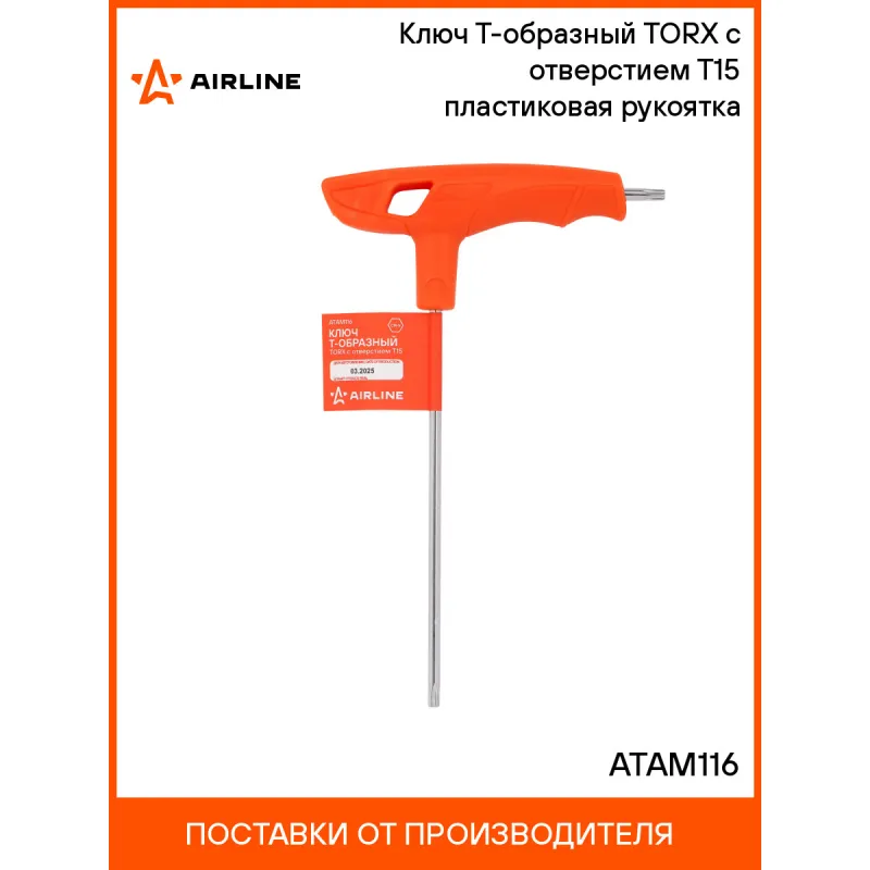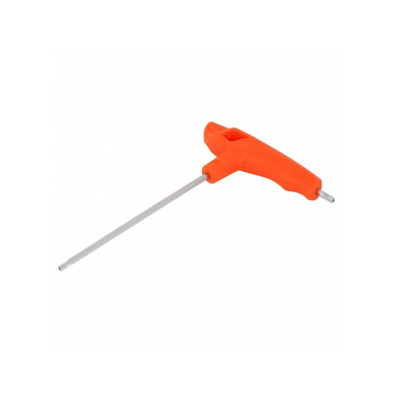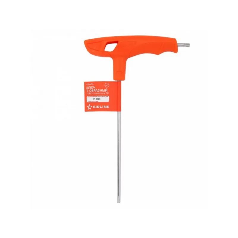 Ключ Т-образный TORX с отверстием T15 пластиковая рукоятка Описание: Стержень ключей изготовлен из хром-ванадиевой стали. В процессе производства подвергается закалке и отпуску. Финишное покрытие – хромирование. Эргономичная рукоятка изготовлена из прочного литого пластика. Характеристики: Артикул: ATAM116 Размер: T15 Длина, мм: 130 Комплектация: Ключ - 1 шт Гарантия: от 1 года.