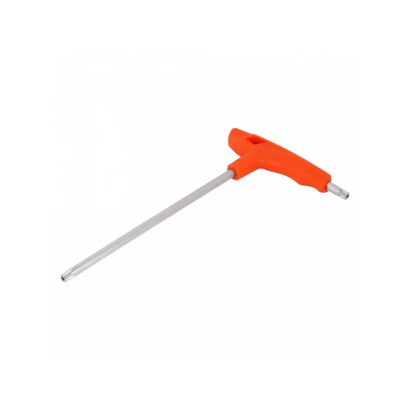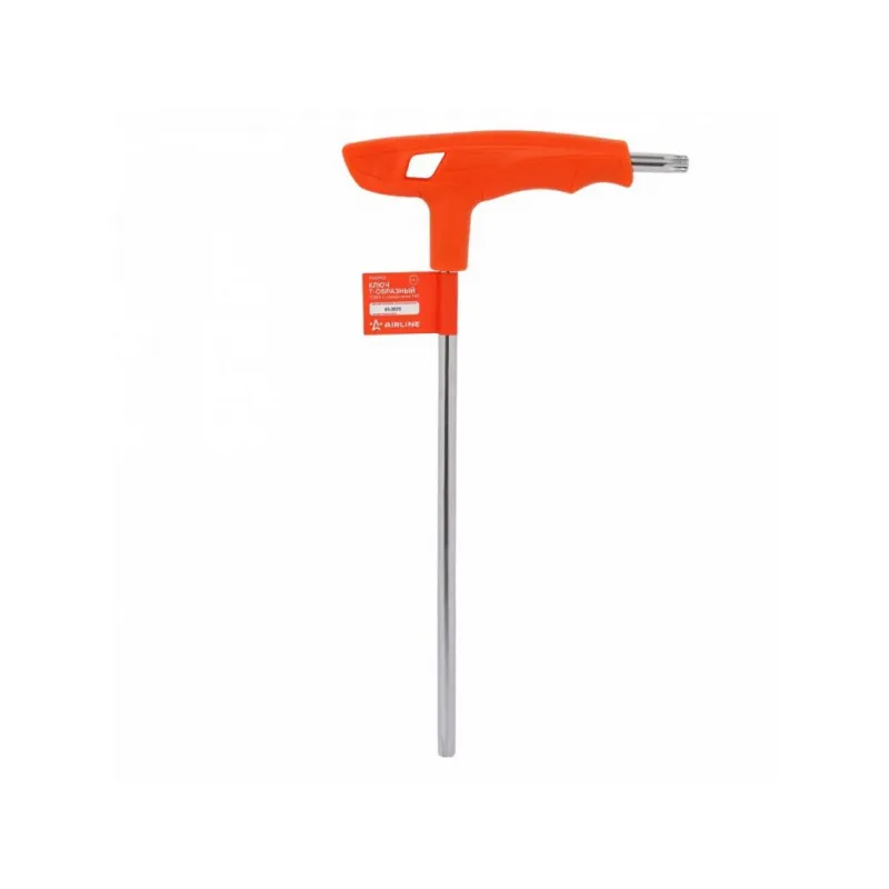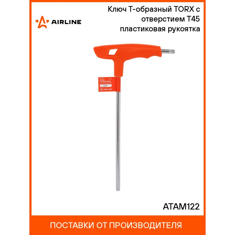 Ключ Т-образный TORX с отверстием T45 пластиковая рукоятка Описание: Стержень ключей изготовлен из хром-ванадиевой стали. В процессе производства подвергается закалке и отпуску. Финишное покрытие – хромирование. Эргономичная рукоятка изготовлена из прочного литого пластика. Характеристики: Артикул: ATAM122 Размер: T45 Длина, мм: 250 Комплектация: Ключ - 1 шт Гарантия: от 1 года.