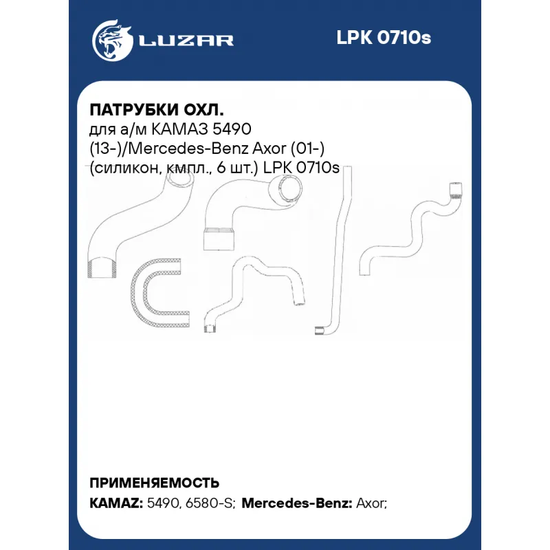 Патрубки охл. для а/м КАМАЗ 5490 (13-)/Mercedes-Benz Axor (01-) (силикон, кмпл., 6 шт.) Характеристики: Артикул: LPK 0710s OEM номера: 5490А-1301177, 5490А-1301175, 5490А-1301176, 5490А-1301178, 5490А-1301180, 5490А-1301179 Трансмиссия: МТ/AT Кондиционер: +/- Сопутствующий товар: Радиаторы охлаждения: LRc 15703 Количество на автомобиль: 1 Материал: Силикон (синий MVQ) Аналог: LPK 0710 (Резина армированная, EPDM) Применяемость: OM 457LA Подходит для авто: КамаАЗ 5490, 6580-S Mercedes-Benz Axor (01-) Для проверки применяемости отправьте VIN автомобиля через вкладку "Есть вопросы о товаре?" Комплектация: Патрубки охлаждения (MVQ) - 6 шт Паспорт изделия. Гарантия: от 1 года.