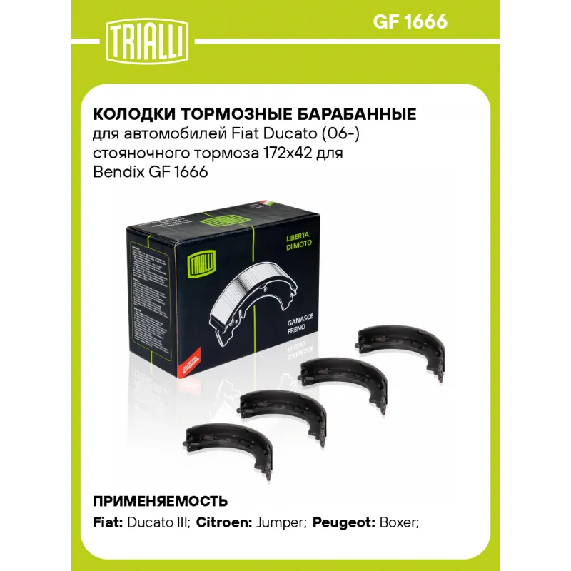 Колодки тормозные барабанные для автомобилей Fiat Ducato (06-) стояночного тормоза 172x42 для Bendix Характеристики: Артикул: GF 1666 OEM номера: 4241N5, 4141N5, 77364023 Гарантийный срок: 1 год / 30 000 км Сторона установки: Задняя ось Количество на автомобиль: 1 Ширина, мм: 42 Особенности конструкции:: Стояночная тормозная система Диаметр, мм: 172 Тормозная система: Bendix Товарная линейка: BLACK Подходит для авто: Fiat Ducato III (06-) Citroen Jumper (06-) Peugeot Boxer (06-) Для проверки применяемости отправьте VIN автомобиля через вкладку "Есть вопросы о товаре?" Комплектация: Колодка тормозная - 4 шт Гарантия: от 1 года.