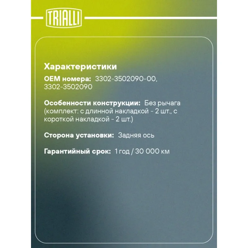 | TRIALLI GF238 2 шт. | 2 дня | 85.10 р. | |