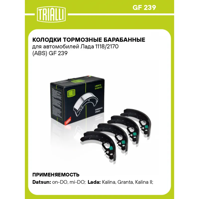 Колодки тормозные барабанные для автомобилей Лада 1118/2170 (ABS) Характеристики: Артикул: GF 239 OEM номера: 1118-3502090, 11180350209055, 1118-0350209-090, 21920-3502090-55, 11180-3502090-00, 21920-3502090-00, 3601-3502090, 44060-5PA0C, 440605PA0D Гарантийный срок: 1 год / 30 000 км Сторона установки: Задняя ось Количество на автомобиль: 1 Сопутствующие товары:: TF 079, TF 059, CF 705, BF 208 Ширина, мм: 41 Особенности конструкции:: для противоблокировочного устройства Диаметр, мм: 200 Тормозная система: Fiat Товарная линейка: BLACK Ось (сторона установки): зад Трансмиссия: М ABS: + Подходит для авто: Datsun on-DO (14-), mi-DO (15-) ВАЗ Kalina (04-), Granta (10-), Kalina (04-), Kalina (04-), Kalina II (13-), Priora (07-) Для проверки применяемости отправьте VIN автомобиля через вкладку "Есть вопросы о товаре?" Комплектация: Колодка тормозная - 4 шт Гарантия: от 1 года.