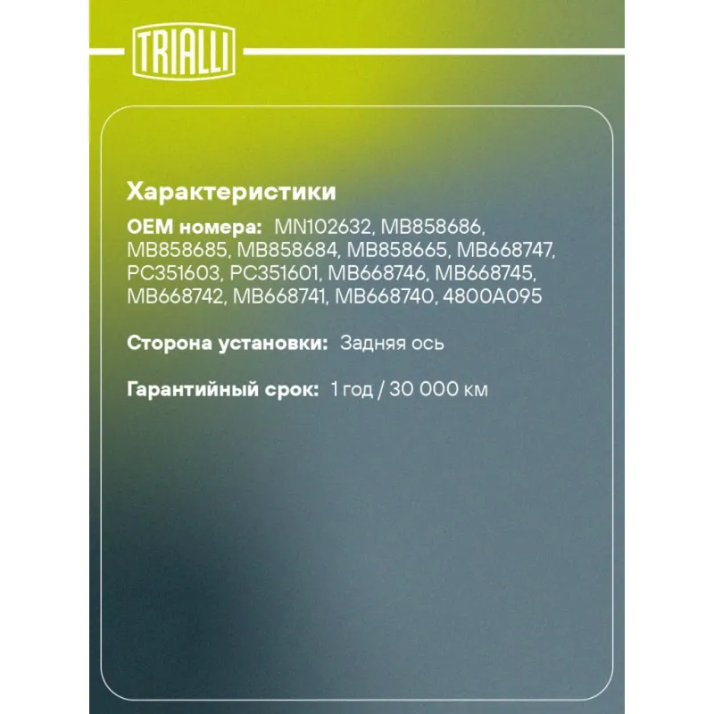 | Гарантийный срок | 1 год / 30 000 км |
