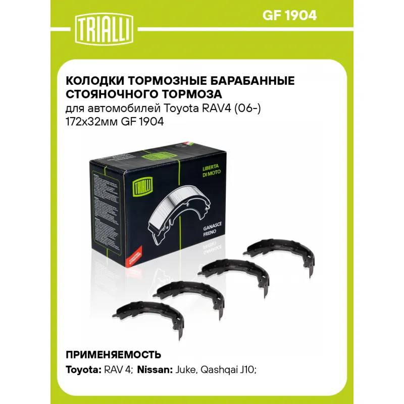 Колодки тормозные барабанные стояночного тормоза для автомобилей Toyota RAV4 (06-) 172x32мм Характеристики: Артикул: GF 1904 OEM номера: 44060JE27A, 44060CY025, 44060029VA, D40601UY6A, 440600004R, 4654042010 Гарантийный срок: 1 год / 30 000 км Сторона установки: Задняя ось Количество на автомобиль: 1 Ширина, мм: 32 Особенности конструкции:: Стояночная тормозная система Диаметр, мм: 172 Товарная линейка: BLACK Подходит для авто: Toyota RAV 4 (06-), RAV 4 (13-), RAV 4 (06-) Nissan Juke (10-), Qashqai J10 (06-), Juke (10-), Qashqai J10 (06-), X-Trail T31 (07-) Для проверки применяемости отправьте VIN автомобиля через вкладку "Есть вопросы о товаре?" Комплектация: Колодка тормозная - 4 шт Гарантия: от 1 года.