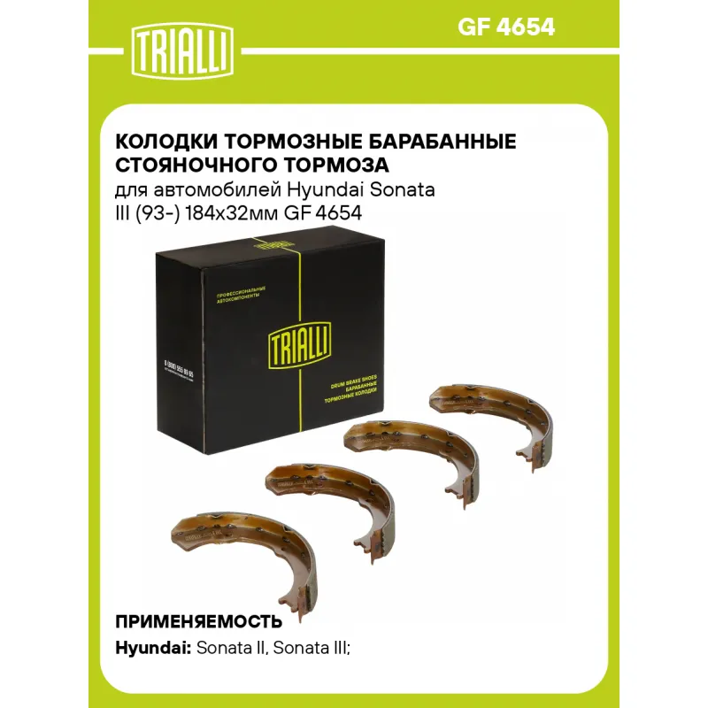 Колодки тормозные барабанные стояночного тормоза для автомобилей Hyundai Sonata III (93-) 184x32мм Характеристики: Артикул: GF 4654 OEM номера: 5820533A00 Гарантийный срок: 1 год / 30 000 км Количество на автомобиль: 1 Ширина, мм: 32 Сторона установки: Задняя ось Диаметр, мм: 184 Товарная линейка: BLACK Подходит для авто: Hyundai Sonata II (88-), Sonata III (93-), Sonata III (93-) Для проверки применяемости отправьте VIN автомобиля через вкладку "Есть вопросы о товаре?" Комплектация: Колодка тормозная - 4 шт Гарантия: от 1 года.