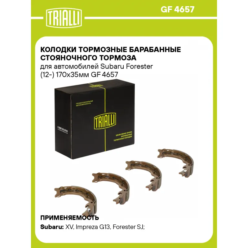 Колодки тормозные барабанные стояночного тормоза для автомобилей Subaru Forester (12-) 170x35мм Характеристики: Артикул: GF 4657 OEM номера: 26694FJ000, 26694FJ001 Гарантийный срок: 1 год / 30 000 км Количество на автомобиль: 1 Ширина, мм: 35 Сторона установки: Задняя ось Диаметр, мм: 169,8 Товарная линейка: BLACK Подходит для авто: Subaru XV (11-), Impreza G13 (11-), Forester SJ (12-) Для проверки применяемости отправьте VIN автомобиля через вкладку "Есть вопросы о товаре?" Комплектация: Колодка тормозная - 4 шт Гарантия: от 1 года.