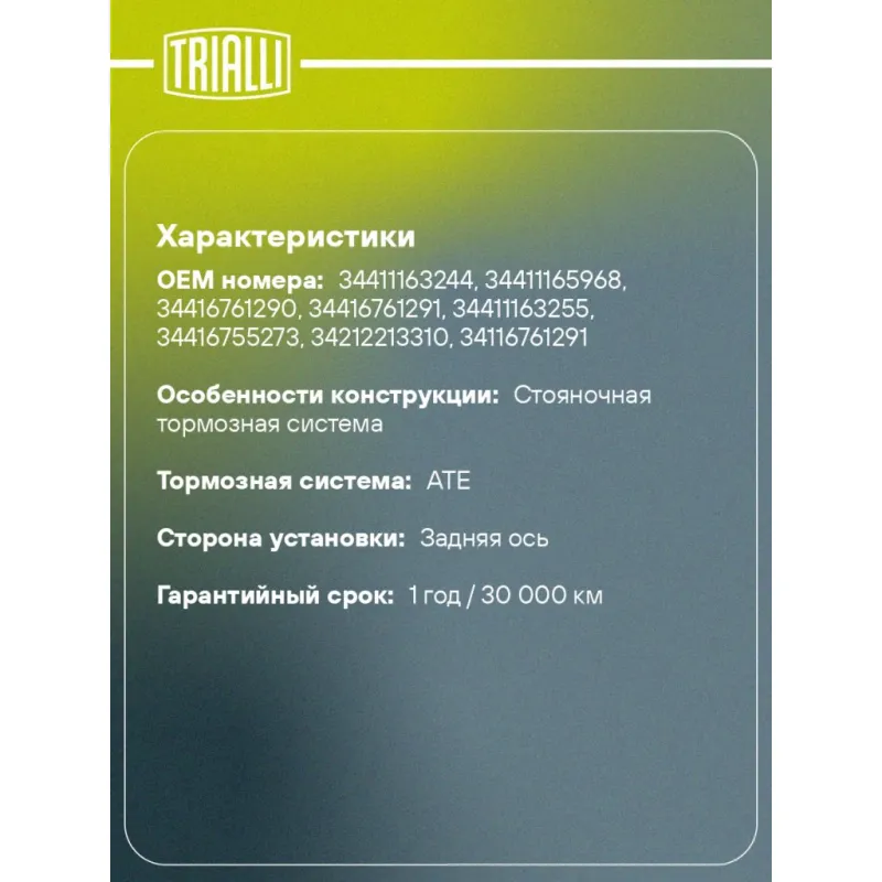Колодки тормозные для автомобилей BMW 3 (E46) (98-) барабанные стояночного тормоза 160x20 для тормозной системы Ate Характеристики: Артикул: GF 2602 OEM номера: 34411163244, 34411165968, 34416761290, 34416761291, 34411163255, 34416755273, 34212213310, 34116761291 Гарантийный срок: 1 год / 30 000 км Сторона установки: Задняя ось Количество на автомобиль: 1 Ширина, мм: 20 Особенности конструкции:: Стояночная тормозная система Диаметр, мм: 160 Тормозная система: ATE Товарная линейка: BLACK Подходит для авто: BMW 1 E81/E87 (04-), 1 E81/E87 (04-), 2 F22 (13-), 3 E46 (98-), 3 E90 (05-), 3 E90 (05-), 1 F20/F21 (11-), 1 F20/F21 (11-), 3 F3x (11-) Для проверки применяемости отправьте VIN автомобиля через вкладку "Есть вопросы о товаре?" Комплектация: Колодка тормозная - 4 шт Гарантия: от 1 года.