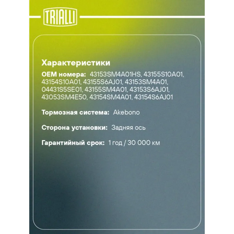 Колодки тормозные для автомобилей Honda Civic VII (00-) барабанные 220x36 для тормозной системы Akebono Характеристики: Артикул: GF 2302 OEM номера: 43153SM4A01HS, 43155S10A01, 43154S10A01, 43155S6AJ01, 43153SM4A01, 04431S5SE01, 43155SM4A01, 43153S6AJ01, 43053SM4E50, 43154SM4A01, 43154S6AJ01, 43153S10A01, 43053SM4A00, 43155SM5A01, 5320076J00, 5320081A00, 5320081A01, 5320081A11, 43155SM4A02, 43155S6AJ02, 43155S10A02, 43154SM4A02, 43154S6AJ02, 43154S10A02, 5320081A01000, 5320076J01000, 5320076J01, 1A082638ZA, 1A082638Z, 1A022638ZA, 5320081A11000, 5320081A10000, 5320081A10, 43153SM4A02, 43153S6AJ02, 43153S10A02, 43053S10A00, 1A162638ZA, 1A162638Z Сторона установки: Задняя ось Количество на автомобиль: 1 Сопутствующие товары:: CF 0551, CF 2547 Ширина, мм: 36 Диаметр, мм: 220 Тормозная система: Akebono Гарантийный срок: 1 год / 30 000 км Товарная линейка: BLACK Подходит для авто: Honda Civic VII (00-), HR-V I (98-), CR-V I (95-), Accord (90-) Suzuki Jimny II (98-), Carry X (99-) Для проверки применяемости отправьте VIN автомобиля через вкладку "Есть вопросы о товаре?" Комплектация: Колодка тормозная - 4 шт Гарантия: от 1 года.
