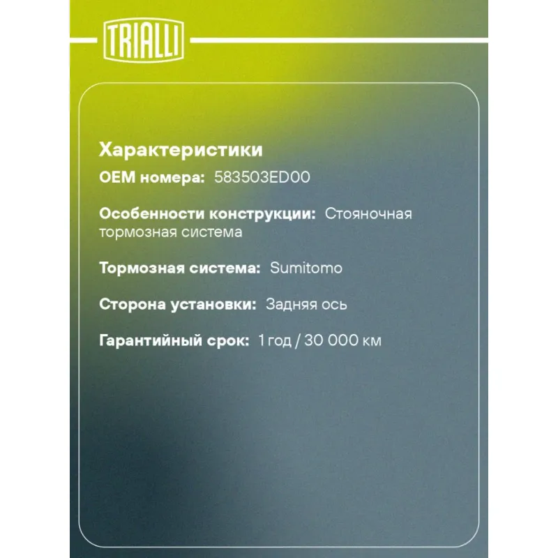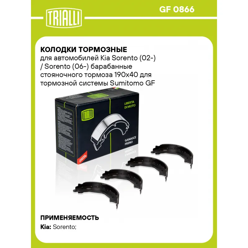Колодки тормозные для автомобилей Kia Sorento (02-) / Sorento (06-) барабанные стояночного тормоза 190x40 для тормозной системы Sumitomo Характеристики: Артикул: GF 0866 OEM номера: 583503ED00 Гарантийный срок: 1 год / 30 000 км Сторона установки: Задняя ось Количество на автомобиль: 1 Ширина, мм: 40 Особенности конструкции:: Стояночная тормозная система Диаметр, мм: 190 Тормозная система: Sumitomo Товарная линейка: BLACK Подходит для авто: Kia Sorento (02-), Sorento (02-) Для проверки применяемости отправьте VIN автомобиля через вкладку "Есть вопросы о товаре?" Комплектация: Колодка тормозная - 4 шт Гарантия: от 1 года.